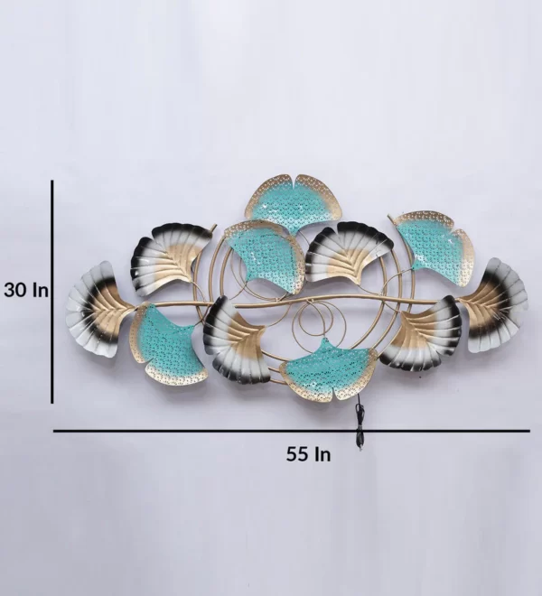 Iron Leaf Wall Art With LED In Green