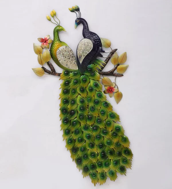 Iron Peocock Wall Art With LED In Green